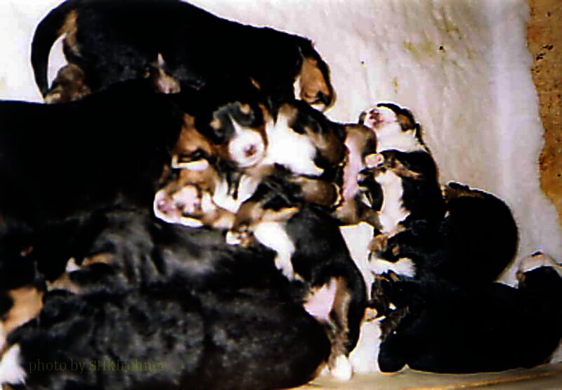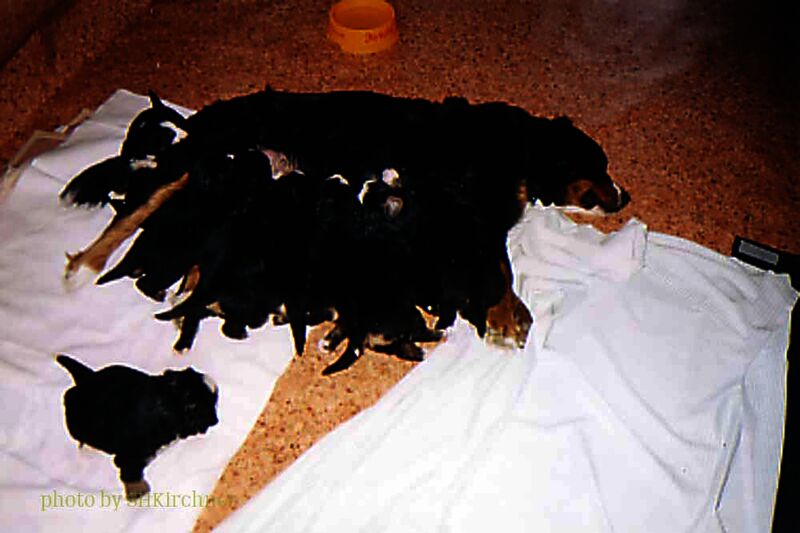 Unsere Jette sollte im Dezember 1997 ihren ersten Wurf haben. Als sicher war das sie trächtig ist wuchs die Spannung von Tag zu Tag und wir hatte große Sorge etwas falsch zu machen. Unsere Jette hingegen meisterte alles mit einer bewunderungswerten Ruhe und Gelassenheit.