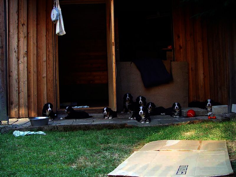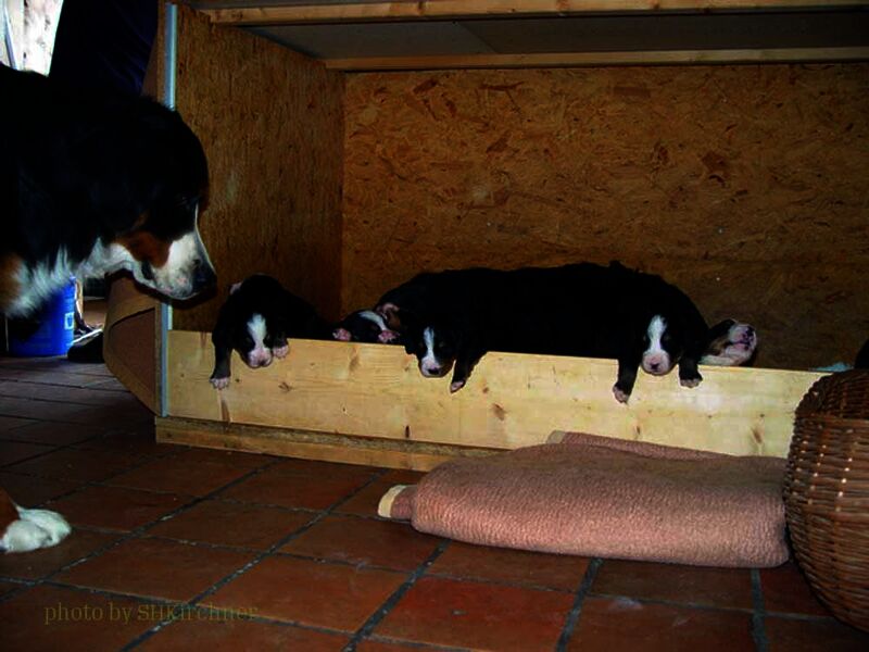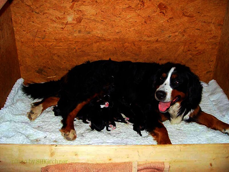 Unser E- Wurf wurde im Sommer 2003 geboren. Zum Glück für Bilka noch vor der großen Hitze. Es waren acht Rüden und zwei Hündinnen.