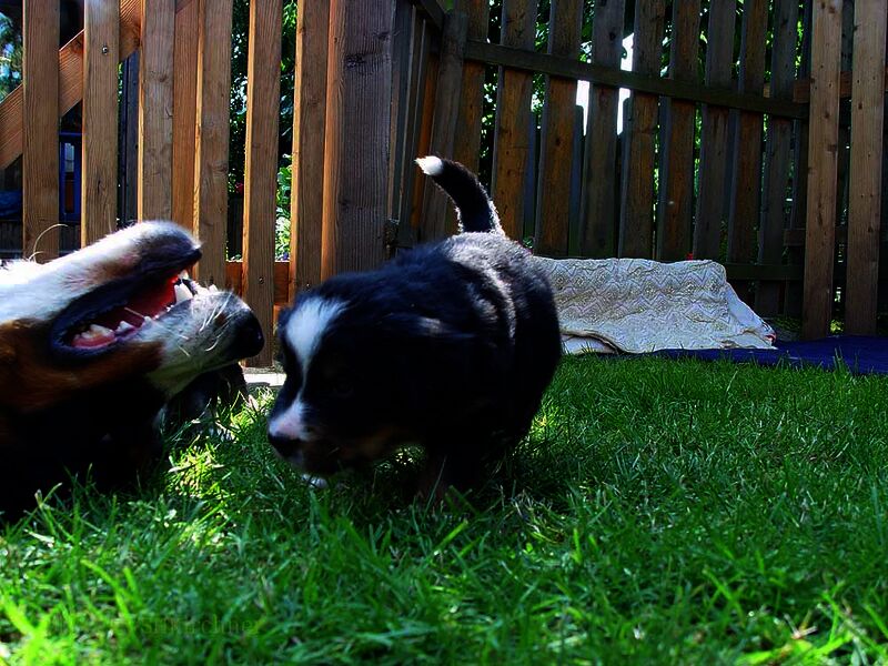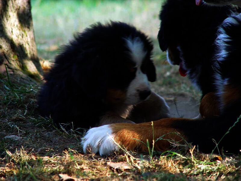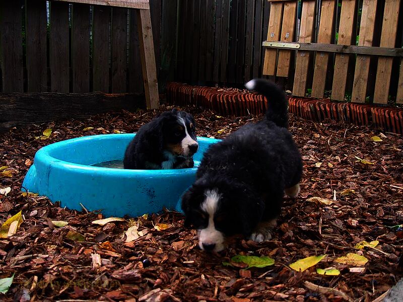 Die Welpen haben unter der Hitze ganz schön gelitten. Tagsüber haben sie viel Zeit mit baden im Planschbecken oder schlafen verbracht. Zu dieser Zeit haben sie überwiegend nachts gefressen und gespielt. Es war auch nicht möglich die Welpen nachts ins Haus zu holen. Diese Versuche wurden mit lautem Protest kommentiert.