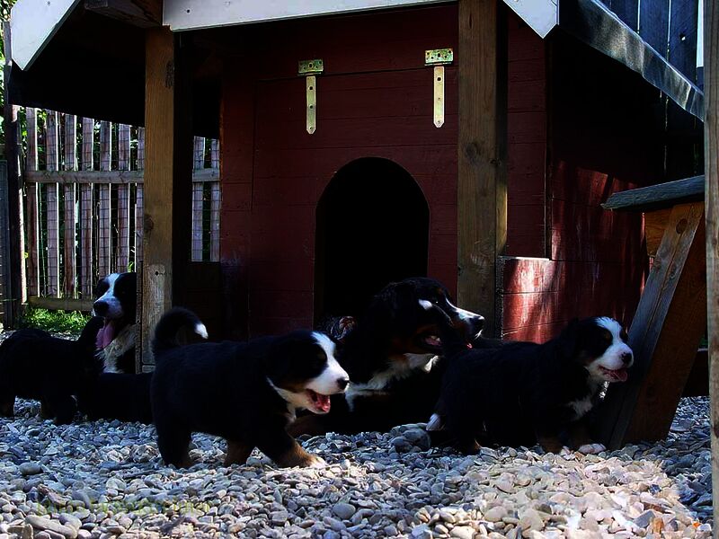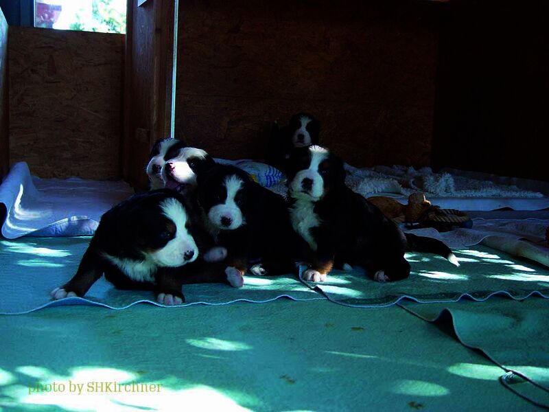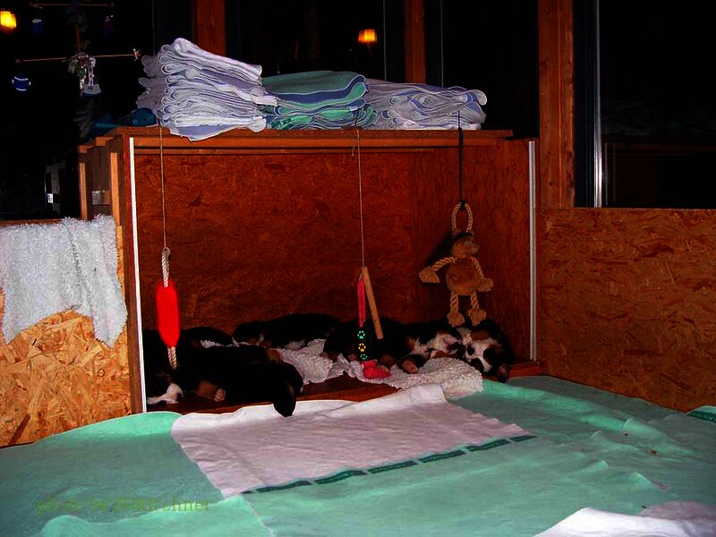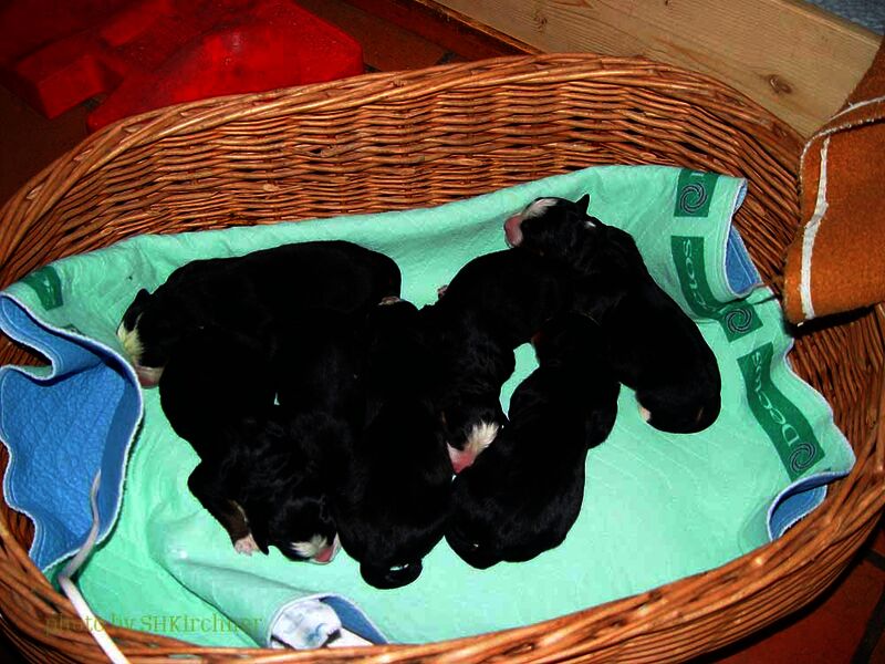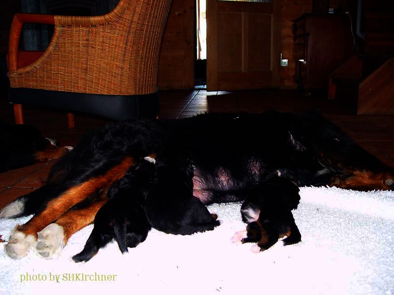 Am 27. August 2006 erblickten, nach 65 Tagen Tragzeit, sieben wunderschöne, gesunde Welpen das Licht der Welt. Das erste Bernerkind wurde auf dem Sofa geboren was aber bei uns fast immer so ist. Die Mütter wollen nicht so gerne allein sein in der Wurfkiste.
