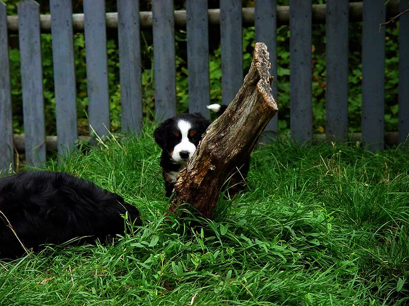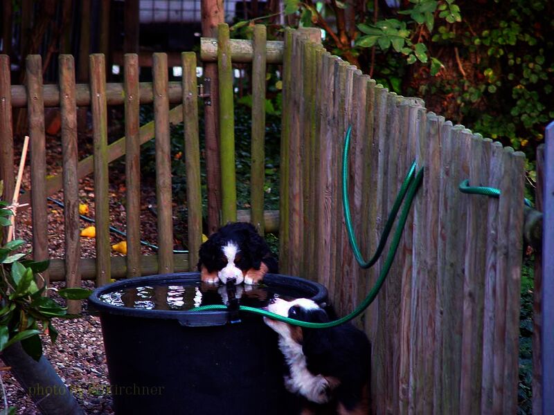 Dank des schönen Wetters haben die Welpen viel Zeit damit verbracht unseren Garten umzugestalten das Rudel auf Trab zu halten und die Katzen kennen zu lernen.