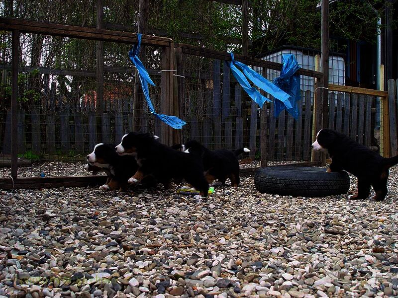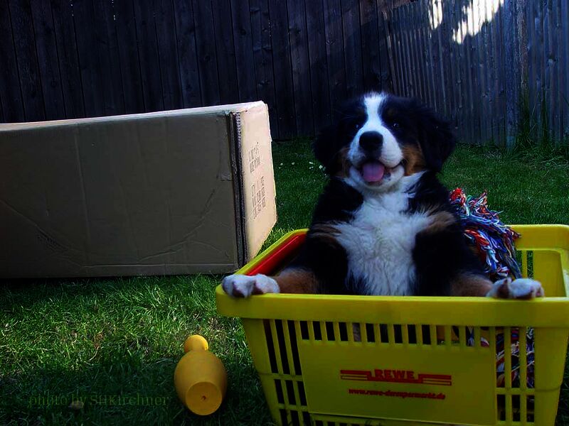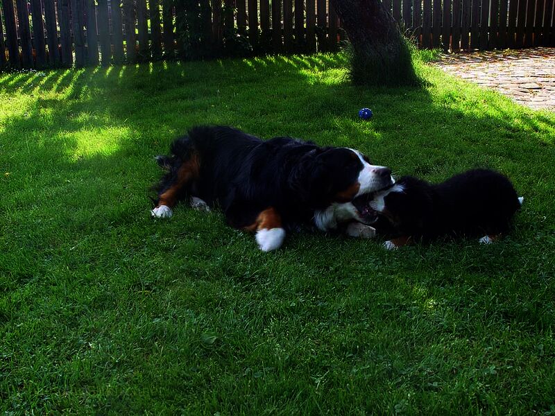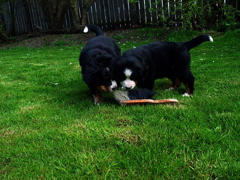 Die kleinen Racker lernten all das was ein kleiner Berner wissen sollte. Ganz schnell lernten sie auch wie es geht Dummheiten zu machen und wirklich alles zu untersuchen. Selbst unsere Katzen wurden nicht verschont.