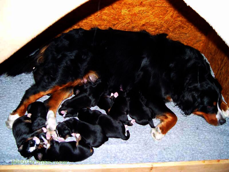 Am 20. September 2009 trafen sich Lotti und Yumak zwecks Familieplanung. Nach langen 65 Tagen (wir mussten zwei Tage länger warten als normal) kamen innerhalb von sechs Stunden 10 gesunde Hundekinder zur Welt. Bei so vielen Kindern unterstützten wir unsere Lotti ab dem dritten Lebenstag der Welpen und fütterten Welpenmilch zu. Lotti erwies sich einmal mehr als liebevolle geduldige und völlig relaxte Hundemama. Von Anfang an waren die Kleinen in unser normales Leben integriert.