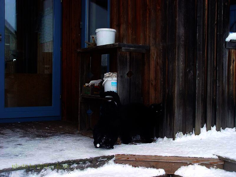 Im Laufe der Zeit eroberten sie unseren Garten und wären am liebsten den ganzen Tag draußen gewesen. Nun wurden auch unsere Katzen genauer unter die Lupe genommen und neugierig erkundet. Da die Hundekinder ja unbedingt den Schnee probieren mussten hatten wir zwei Tage mit ein wenig Durchfall zu kämpfen. Ansonsten sind die Welpen Problemlos groß geworden.