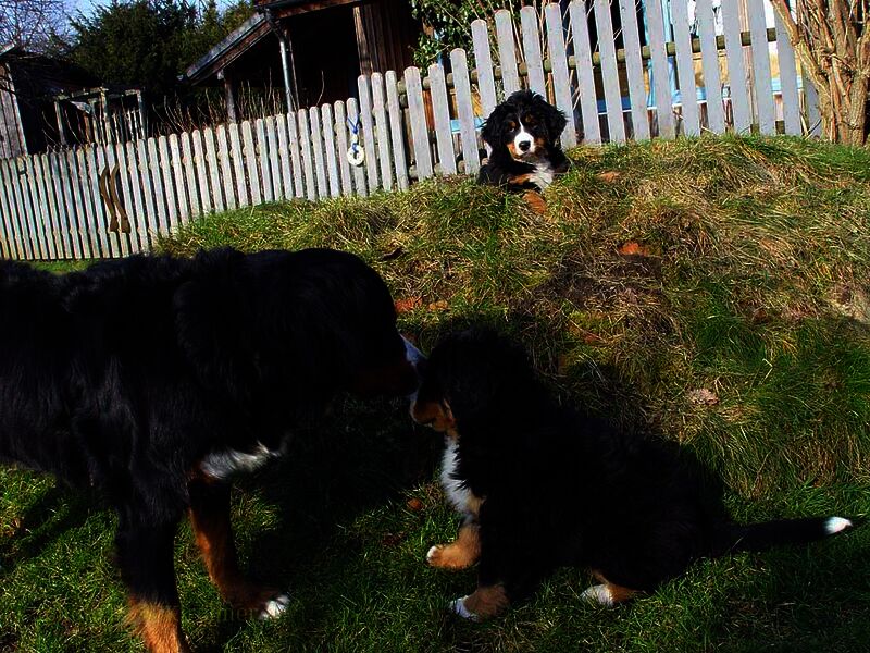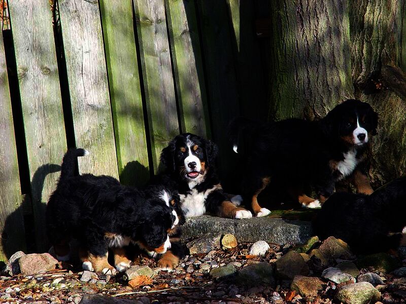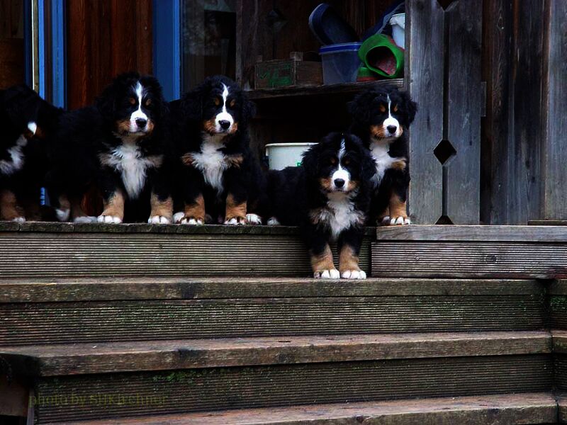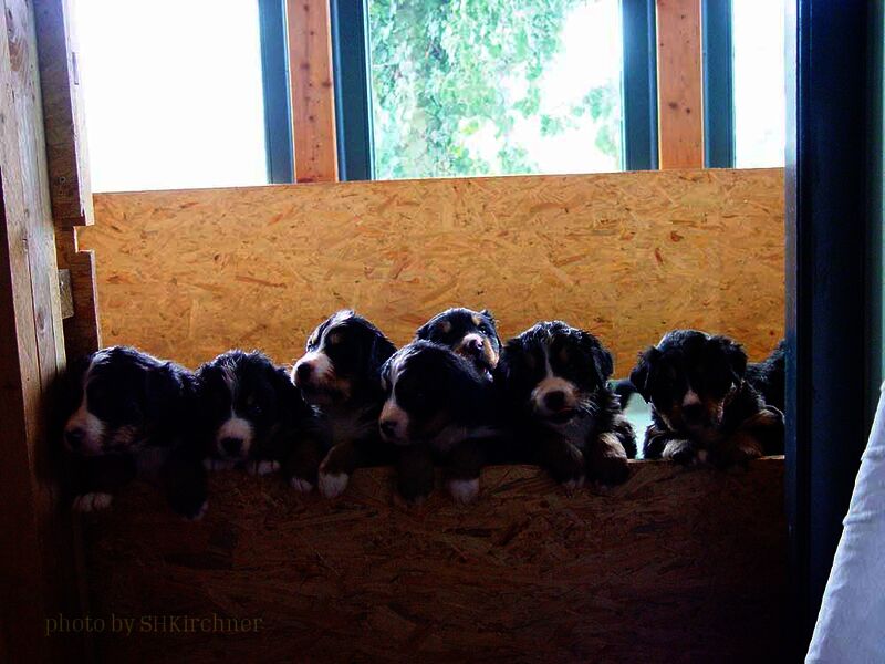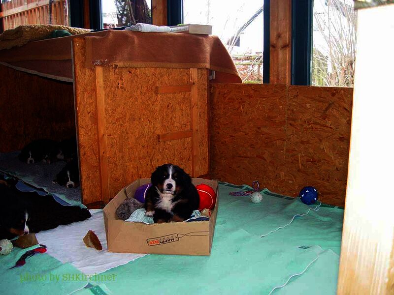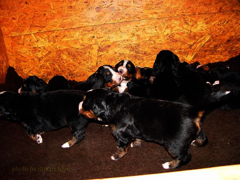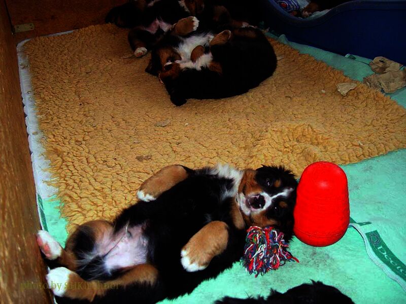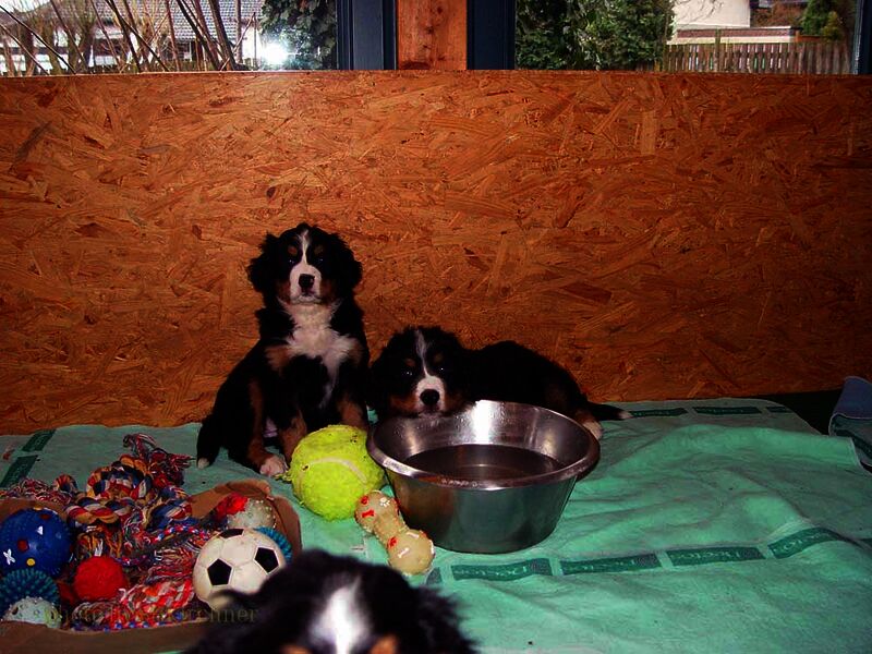 In den nächsten Wochen wuchsen die Welpen ohne Komplikationen auf und lernten jeden Tag etwas Neues dazu. Da es so viele Welpen waren hatten wir eigentlich jeden Tag Besuch und die Welpen somit jede Menge verschiedene Menschen um sich welche zum Teil eigene Hunde zwecks neuer Familienzusammenführung mitbrachten.