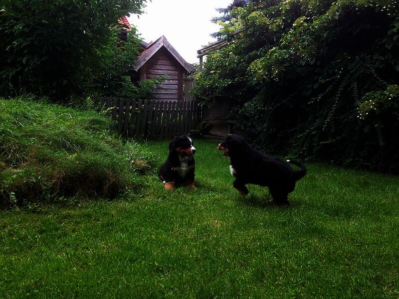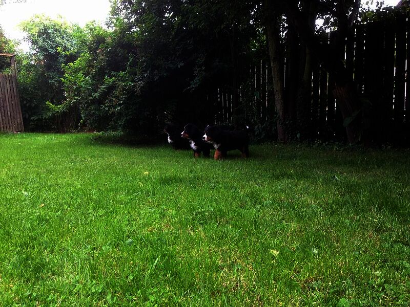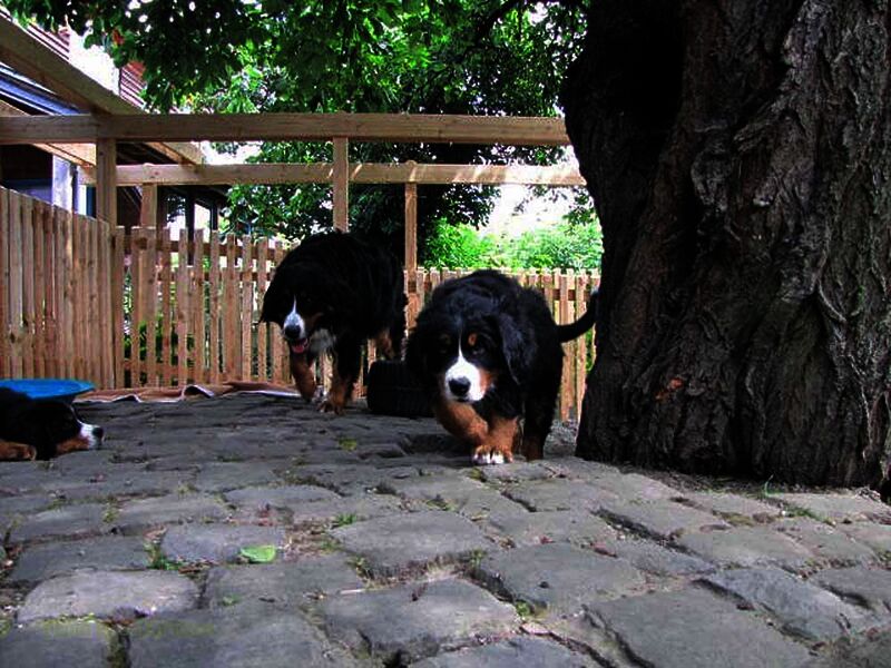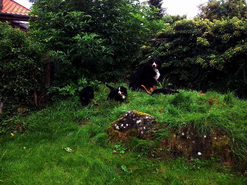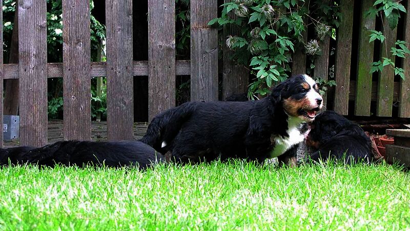 Mit drei Wochen zogen die Welpen dann vom Wohnzimmer in den Wintergarten. Dort konnten sie jetzt beginnen die Welt zu erforschen. Jeden Tag lernten die kleinen Plüschbären was ein großer Hund einmal wissen muss. Unseren Garten eroberten die Babys ganz schnell und wollten eigentlich nur draußen spielen. Durften sie auch, nur Nachts gab es keine Diskussion da wurde im Wintergarten geschlafen.