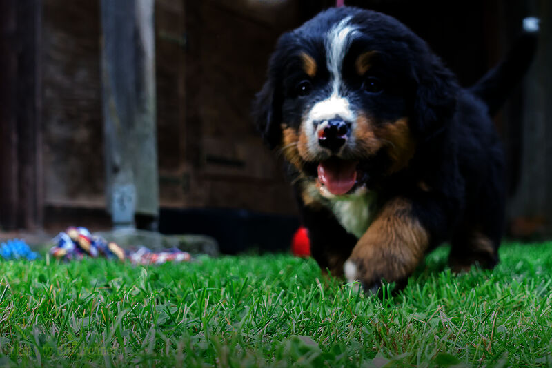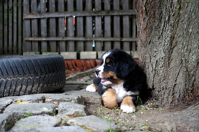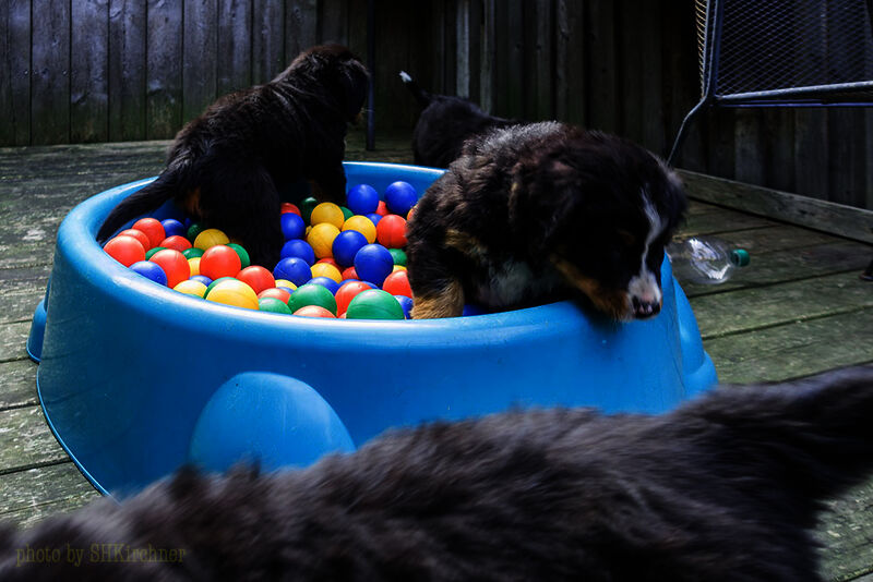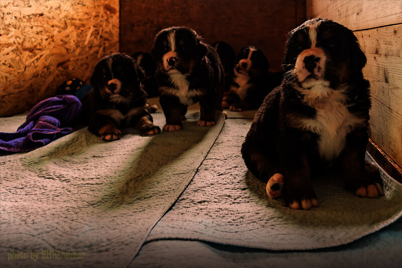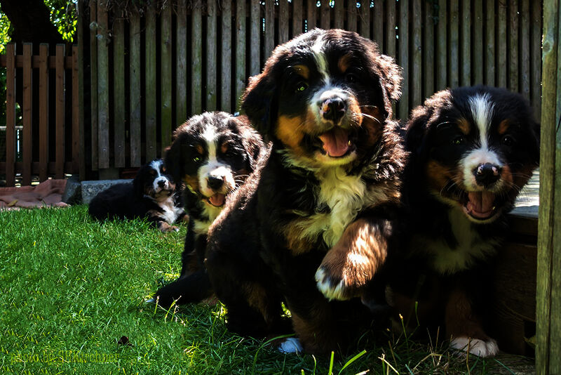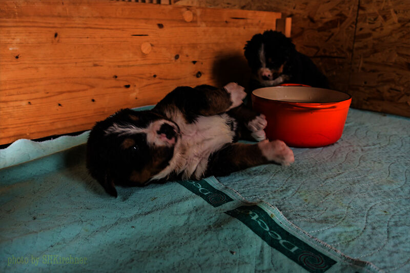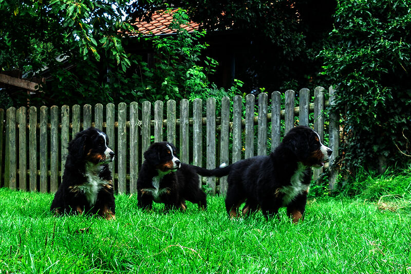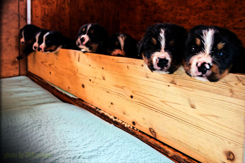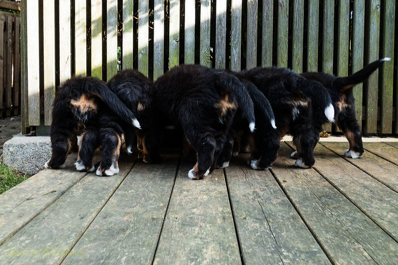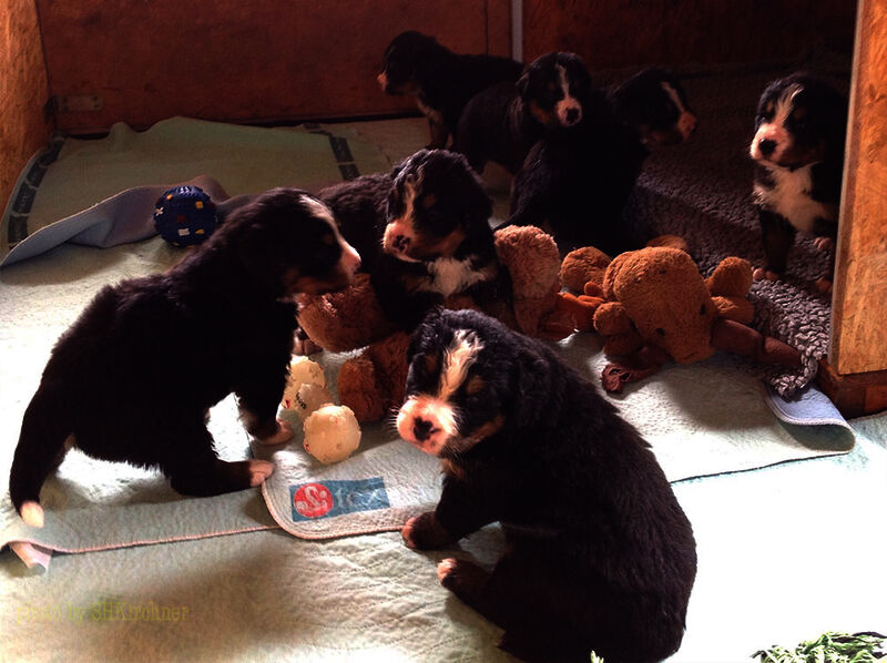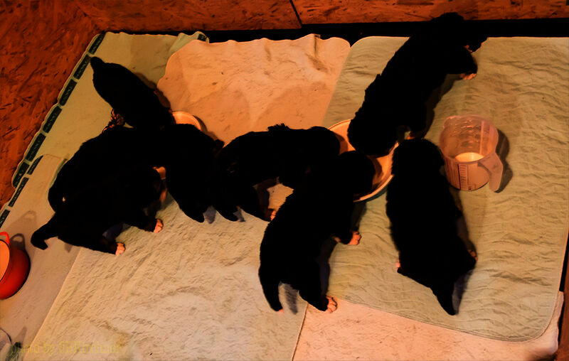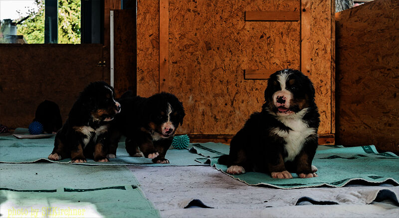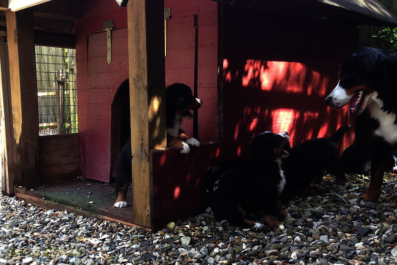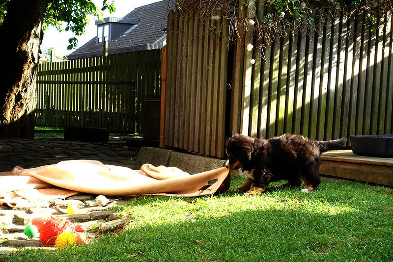 Nach drei Wochen zogen die Welpen in den Wintergarten und konnten von da an jeden Tag ein wenig mehr der großen weiten Welt erobern.