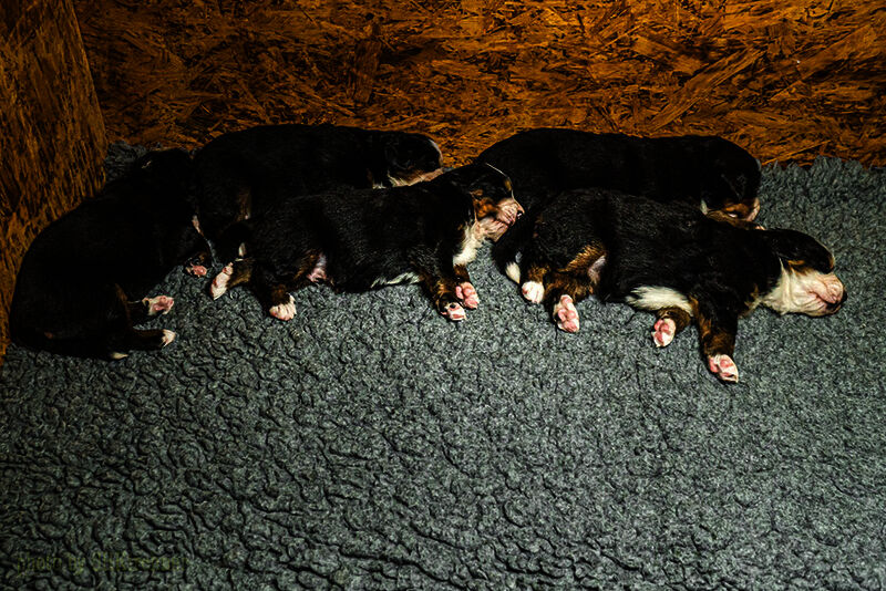Am 16. August 2020 um 03.30 Uhr erblickte der erste Welpe das Licht der Welt. Um 09.00 Uhr waren fünf Welpen geboren, vier Rüden und eine Hündin. Alle sind fit und munter.