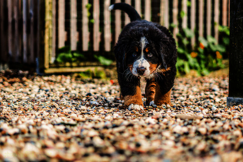 Da Ellie der Meinung war all ihre Kinder müssten als erstes den Garten kennenlernen haben wir mit einer Taschenlampe und Handtüchern bewaffnet sehr viel Zeit im Garten verbracht. Wie bei einer Völkerwanderung, das Rudel musste ja immer mit.