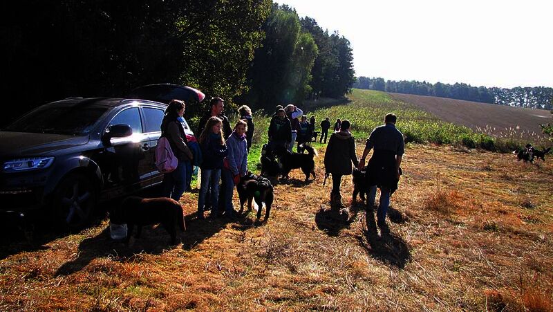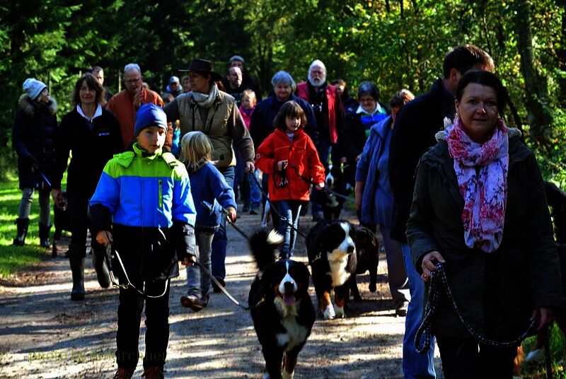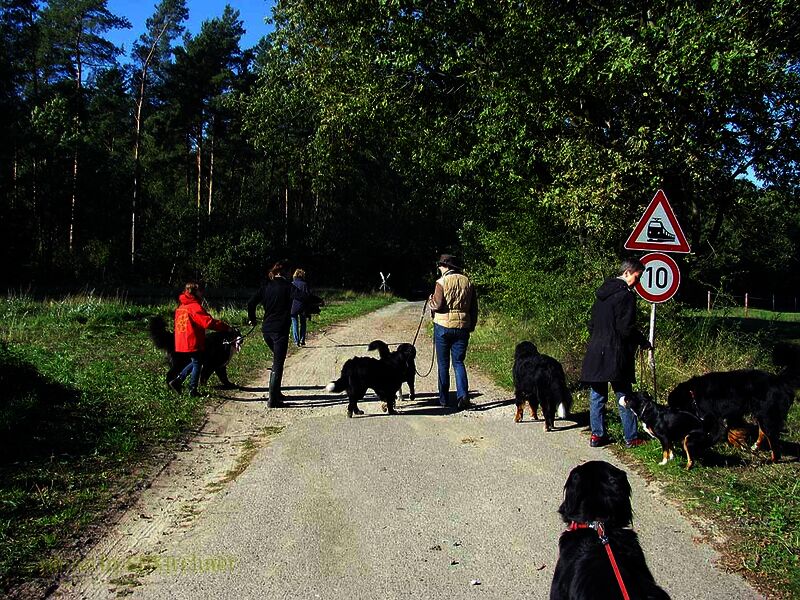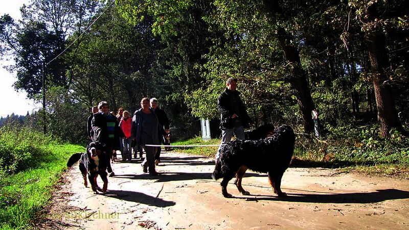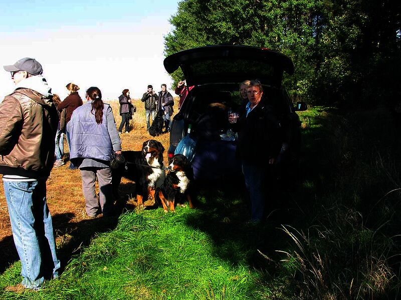 Bei herrlichstem Sonnenschein und Bernertauglichen Temperaturen trafen sich ca. 30 Hunde und die dazugehörigen Zweibeiner. Drei Hunde aus dem Zwinger "von der Bargkoppel" waren zu Gast und verbrachten mit uns diesen schönen Tag. Frau Neuberth hatte eine superschöne Strecke zum Laufen ausgesucht und so machten wir uns, nach ausführlichem beschnuppern und toben auf dem Hof, auf den Weg. Nach einer guten Stunde überraschten uns drei Pferdegespanne um unsere Vierbeiner und uns mit Getränken und kleinen Leckereien zu versorgen. Nach dieser kleinen Stärkung und ganz viele Fotos später traten wir den Heimweg an. Dank der Kutschen konnten einige Zweibeiner den Service einer netten Heimfahrt nutzen.