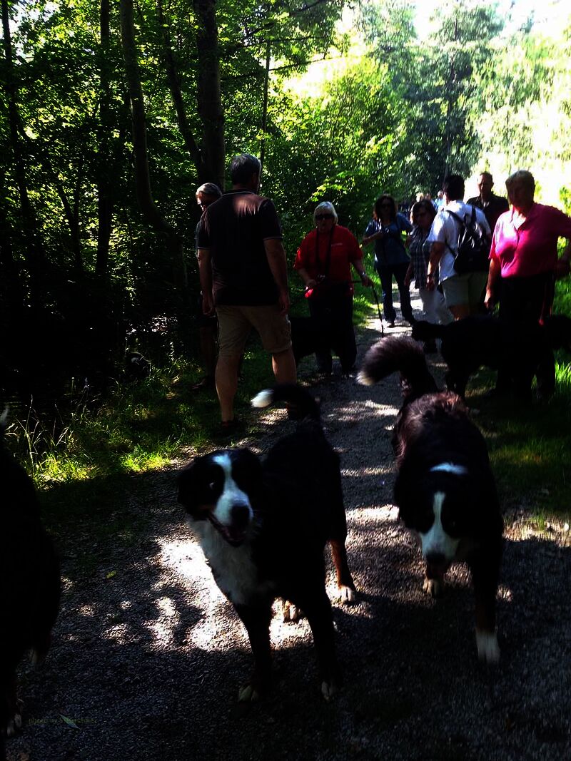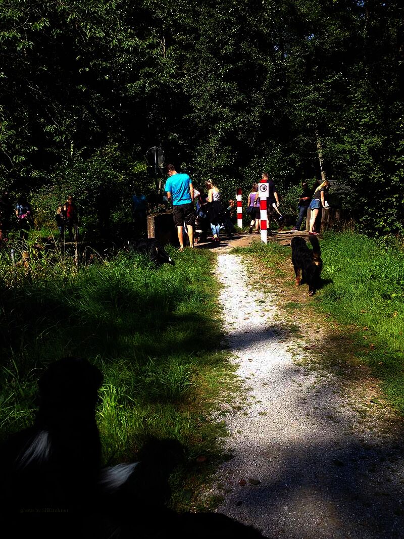Um 11:30 Uhr brachen wir auf um eine kleine Runde zu drehen. Der Weg führte an einem Bach entlang und so hatten die Hunde viel Gelegenheit im Wasser zu toben und sich so etwas abzukühlen. Anschließend gab es lecker Gegrilltes mit Beilagen.